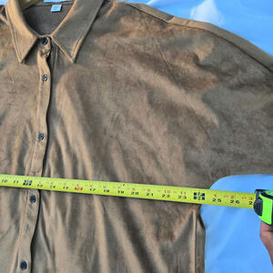 Coldwater Creek Womens Western Lagom Oversized Faux Suede Button Down Shirt PXL Camel Brown 3/4 Sleeve Stretch