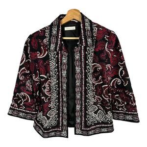 Coldwater Creek Womens size 14 3/4 Sleeve Paisley Flourish Open Front Jacket