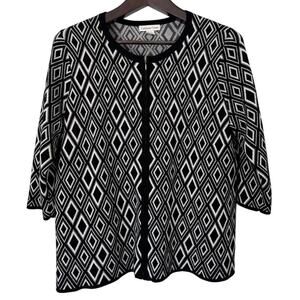 Coldwater Creek Black and White Zip Front Sweater Size 1X