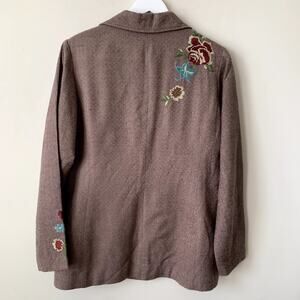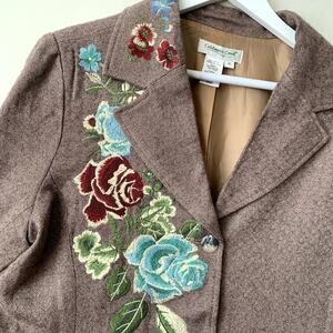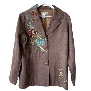 Coldwater Creek Wool Blend Blazer Size 10 Brown Flower Embellished Twee Art