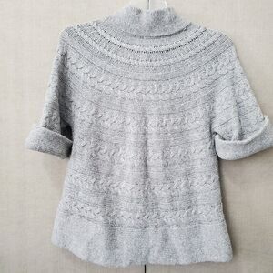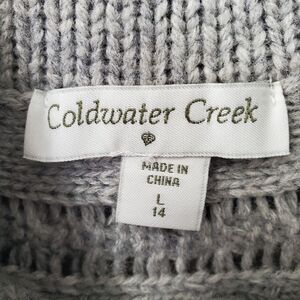 This is a Coldwater Creek Wool Blend Gray Cable Knit Sequined Button-Up Cardigan Sweater Large.