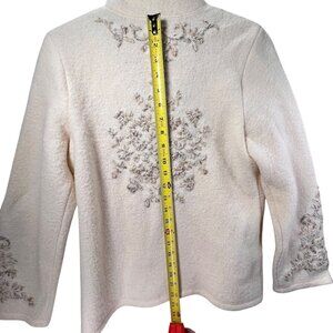 Coldwater Creek Wool Embroidered Jacket Boho Ornate Metal Clasps Ivory Womens S