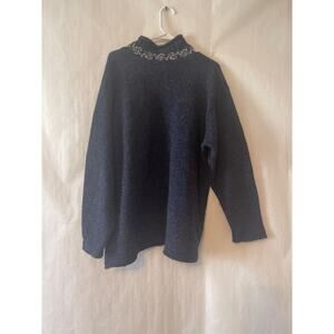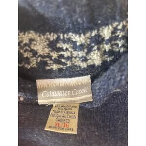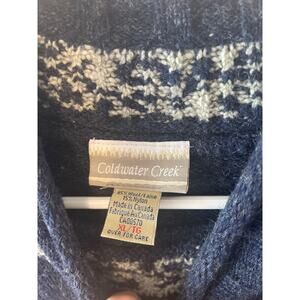 Coldwater Creek Wool Mock Neck Blue White Sweater Women's Size XL