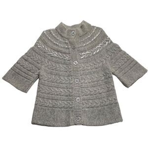 Coldwater Creek Wool Rabbit Hair Blend Cable Knit Embellished Cardigan FLAW Sz M