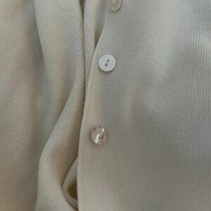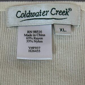Classic and versatile Coldwater Creek button-front cardigan in a soft cream shade. This timeless piece is perfect for layering and adds a touch of elegance to any outfit. A wardrobe staple that pairs effortlessly with jeans, slacks, or dresses. Great for work, travel, or casual wear.