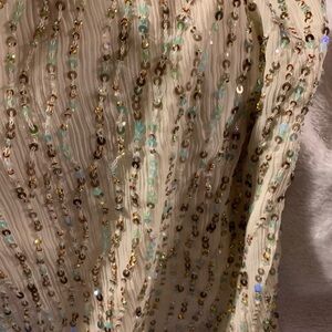 Entire Front of Blouse is covered in gold, green, and clear sequins. Back is solid color - under tunic all cream. Very Beautiful. Never Worn.
