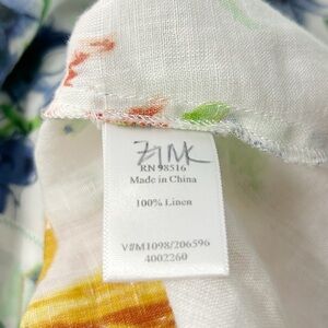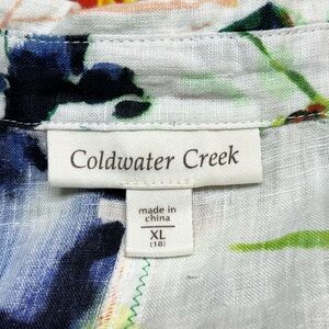 Coldwater Creek XL White Multicolored Floral Linen 3/4 Sleeve Full Zip Jacket