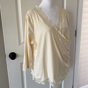 Coldwater Creek XL lace top crossover ivory 3/4 sleeves