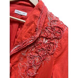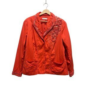 Coldwater Creek Y2K Orange Linen Embroidered Ruffled Blazer