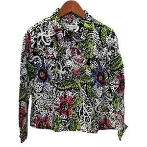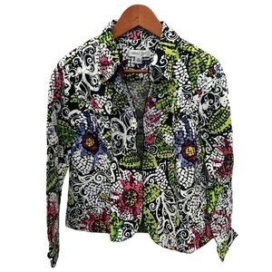 Coldwater Creek Y2k Retro Green White Floral Zip Up Jacket Size MP Medium Petite