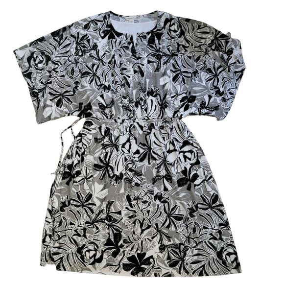 Coldwater Creek black & white floral stretch jersey dress 1x