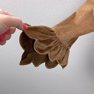 Style suede feel/look blouse scalloped bottom hem, flared scalloped wrists
