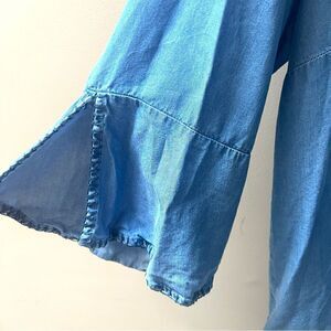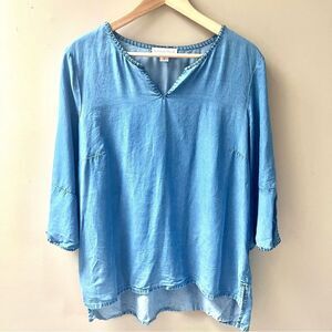 Lower side slits , relaxed fistitching at neckline and end of sleeves