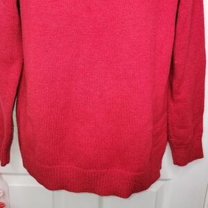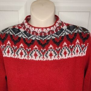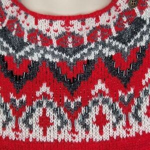 Coldwater Creek fair isle red wool blend sweater. The fair isle print, with beads and buttons on the neckline.