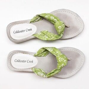 Coldwater Creek lime green/white floral sandals