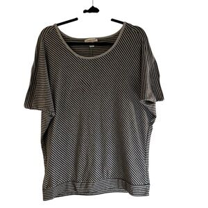 Coldwater Creek metallic silver black striped dolman sleeve top L 14