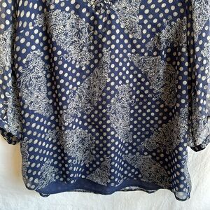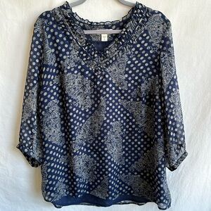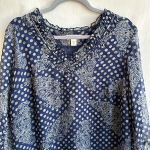 Coldwater Creek navy and gray ruffled V-neck blouse, size 1X