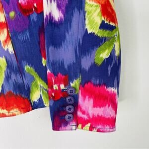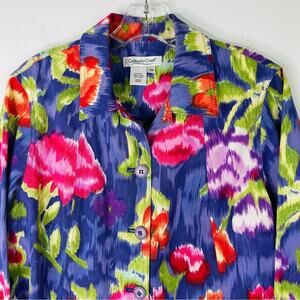 Coldwater Creek purple pink green floral watercolor cropped button jacket PM