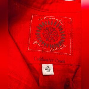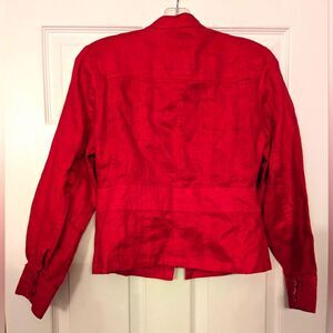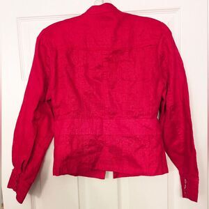 Coldwater Creek red 100% linen fitted utility military button down Blazer jacket size P6