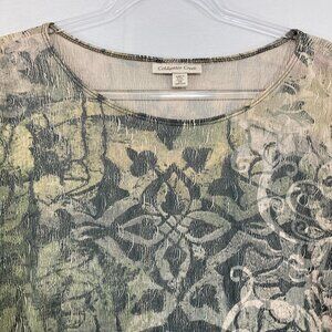 Coldwater Creek size 2X Multi Color Abstract Stretch 3/4 Sleeve Casual Blouse