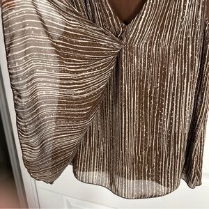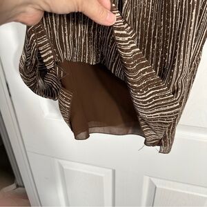 Coldwater Creek sleeveless v-neck top, size M, brown/cream, chiffon, flowy