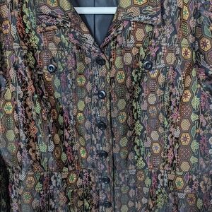 Coldwater Creek sz XLP Embroidered Jacket Button Blazer Vintage 90s Boho Hippie