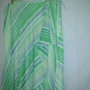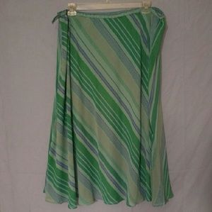 Green and blue stripes make this filmy Coldwater Creek wrap style skirt really pop! EUC. Zipper and clasp closure on the side. Gorgeous skirt!!