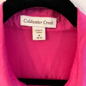 Coldwater Creek Blouse. Shirt. Silk Blend. Pink. Size Med 10-12. Lightweight. Hidden button front. 74% cotton 26% silk. Length from shoulder to bottom is 25”. Armpit to armpit is 21”.