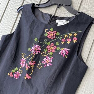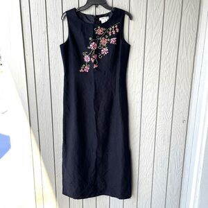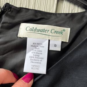 Coldwater Creek Ribbon Embroidered Floral Black Linen Dress - 8