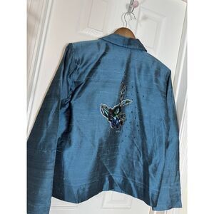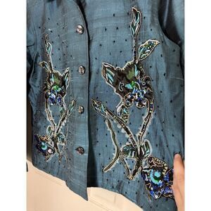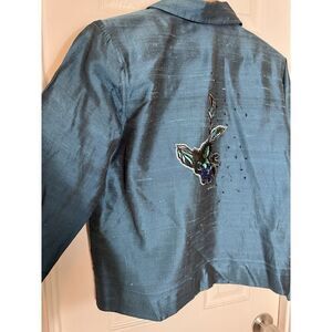 Coldwater Creek Silk Blend Jacket Womens Embellished Embroidered Blues Greens M