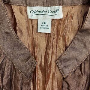 Coldwater Creek Bronze/Copper Ombre Crinkle Dyed 3/4 Sleeve Blouse Button-down Top