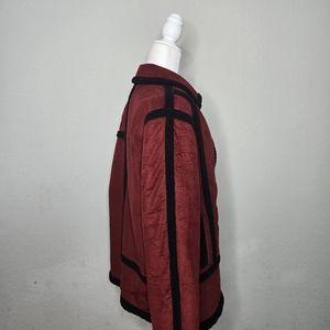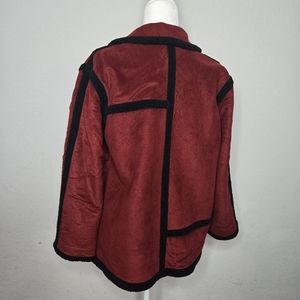 Petite small women's Coldwater Creek red and black sherpa jacket. Love the vintage style freshly dry cleaned. Zips up and has pockets