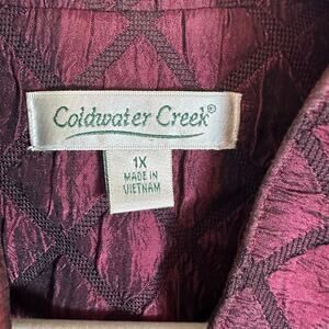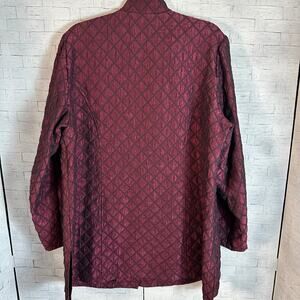 Coldwater creek burgundy quilted jacket blazer satin button up vamp plus size