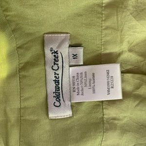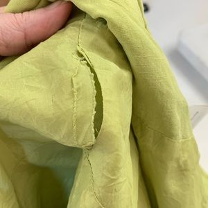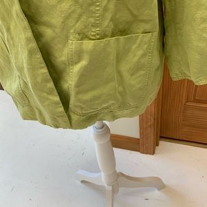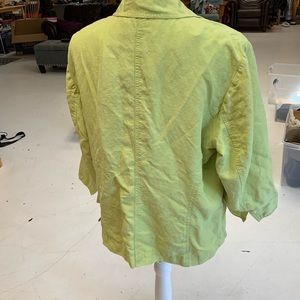 Coldwater creek blazer jacket front pockets 3/4 sleeve 70/30 silk linen blend poly lining sm rip in lining r shoulder area see pic 21-22 in pit pit size 1X bright green