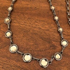 Coldwater Creek | Gunmetal Necklace with Topaz Rhinestones | 36” Adjustable