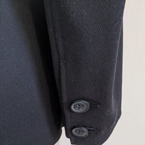 The sleeves have two button detailing and there is a left breast pocket. The two bottom pockets are still sewn shut.