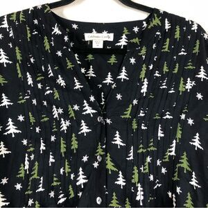 Coldwater Creek Christmas Tree Printed Blouse Holiday Novelty, Black Green White, In Good Preowned Condition. Plus Size 3X