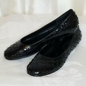 Black color, stich pattern, low heel, round-toe. Great condition!