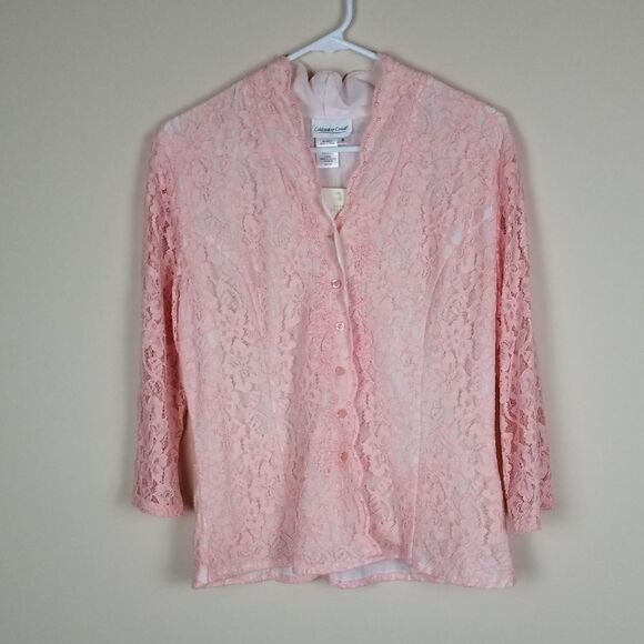 Coldwater Creek Light Pink Lace Button-up Cardigan Top Size Small