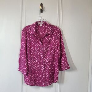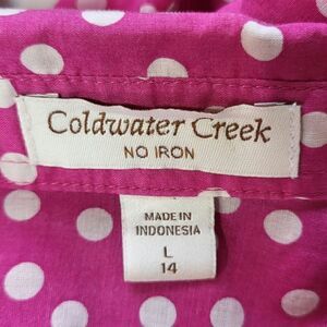 Coldwater Creek pink & white polka dot blouse. Size large (14). 100% cotton.