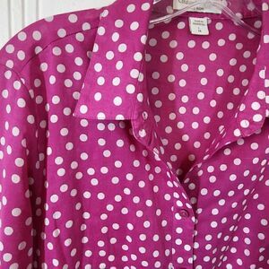 Coldwater Creek pink & white polka dot blouse. Size large (14). 100% cotton.