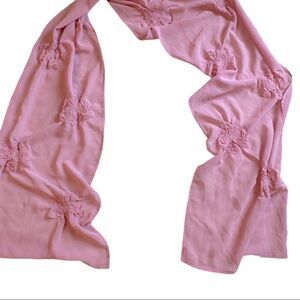 Soft and subtle pink scarf with a design of raised pink flowers.