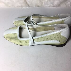 Cold water creek women’s flats mint green and white pre owned in good used condition minimal wear only the inner sole have small peeling see pictures clean no scuff size 10M