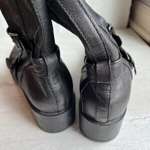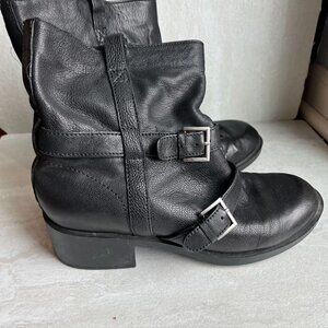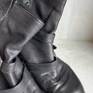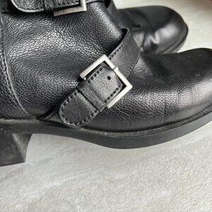 Cole HAAN Nike Air Black Moto Boots SZ 9B Zipper Buckles Leather