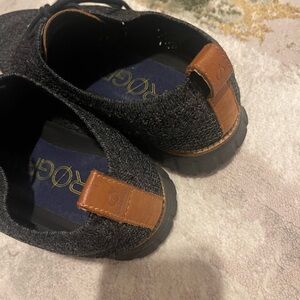 Stylish black shoes with brown accents. Perfect for casual wear.