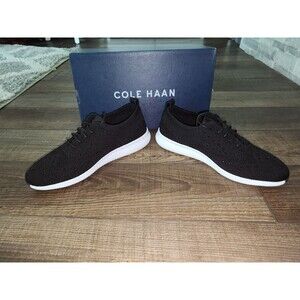 The Cole Haan 2 Zerogrand Stitchlite Oxford Perforated Lace Up Women's Black Sneaker is a stylish and comfortable athletic shoe perfect for casual occasions. Size 8B. Featuring a breathable knit upper, flat heel, and E.V.A. outsole, this shoe offers both style and performance. The lace-up closure and stretch feature ensure a secure and comfortable fit, while the rubber outsole provides traction and durability. With a sleek black color and modern design, this Cole Haan sneaker is a versatile choice for women looking for a blend of fashion and function in their footwear.