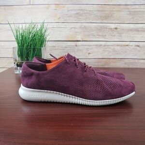 Comfort meets sporty-chic with the Cole Haan 2.Zerogrand Laser Wing Ox sneaker. ; Suede upper. ; Lace-up design. ; Round toe. ; Textile lining. ; Lightly cushioned footbed. ; Synthetic outsole. ; Imported.