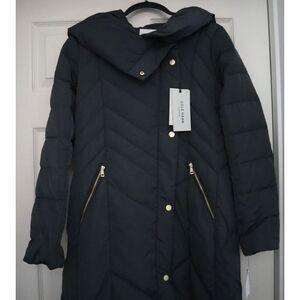 Cole Haan 351SD352 Women's Sz S Gray Hooded Chevron Down Puffer Coat