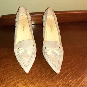 Cole Haan Suede Shoes With Tassels. Best made shoes around. Made in Italy. No marks or scuffs. Heels are stacked. The heel is 3"