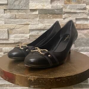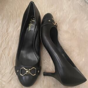 Cole Haan 8M Black Leather Pumps | Gold Horsebit, Work Shoes Heels, Old Money
